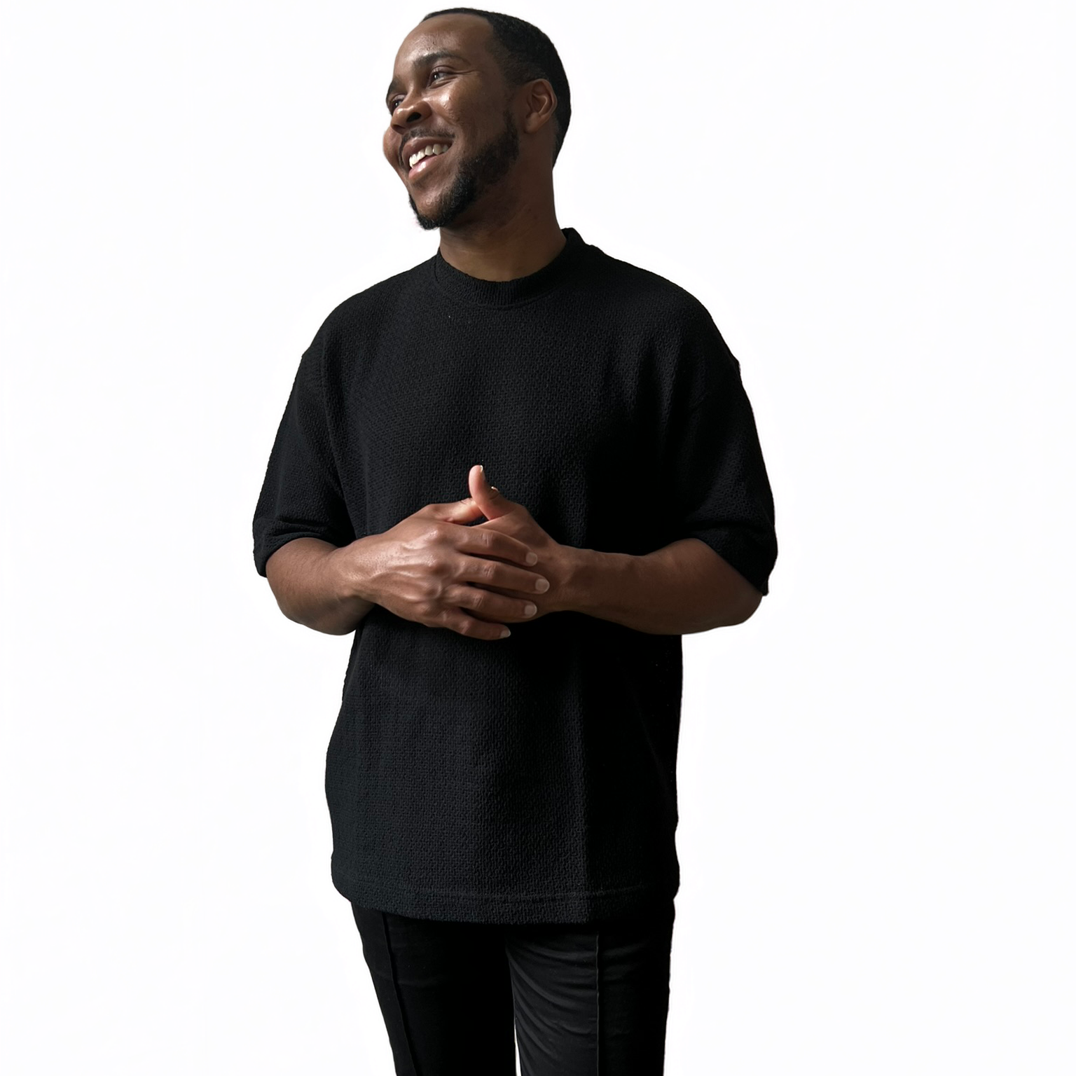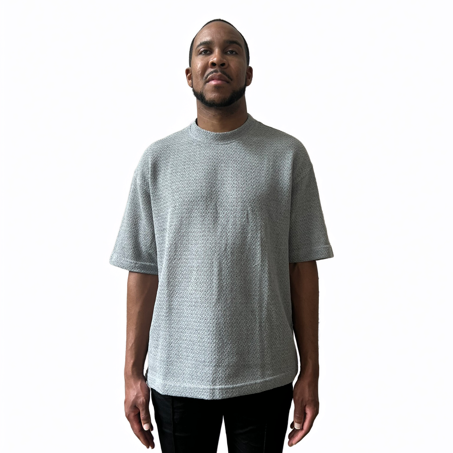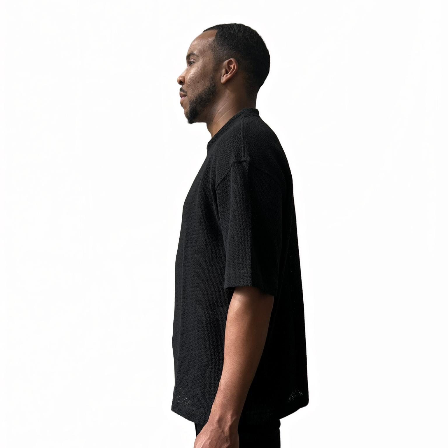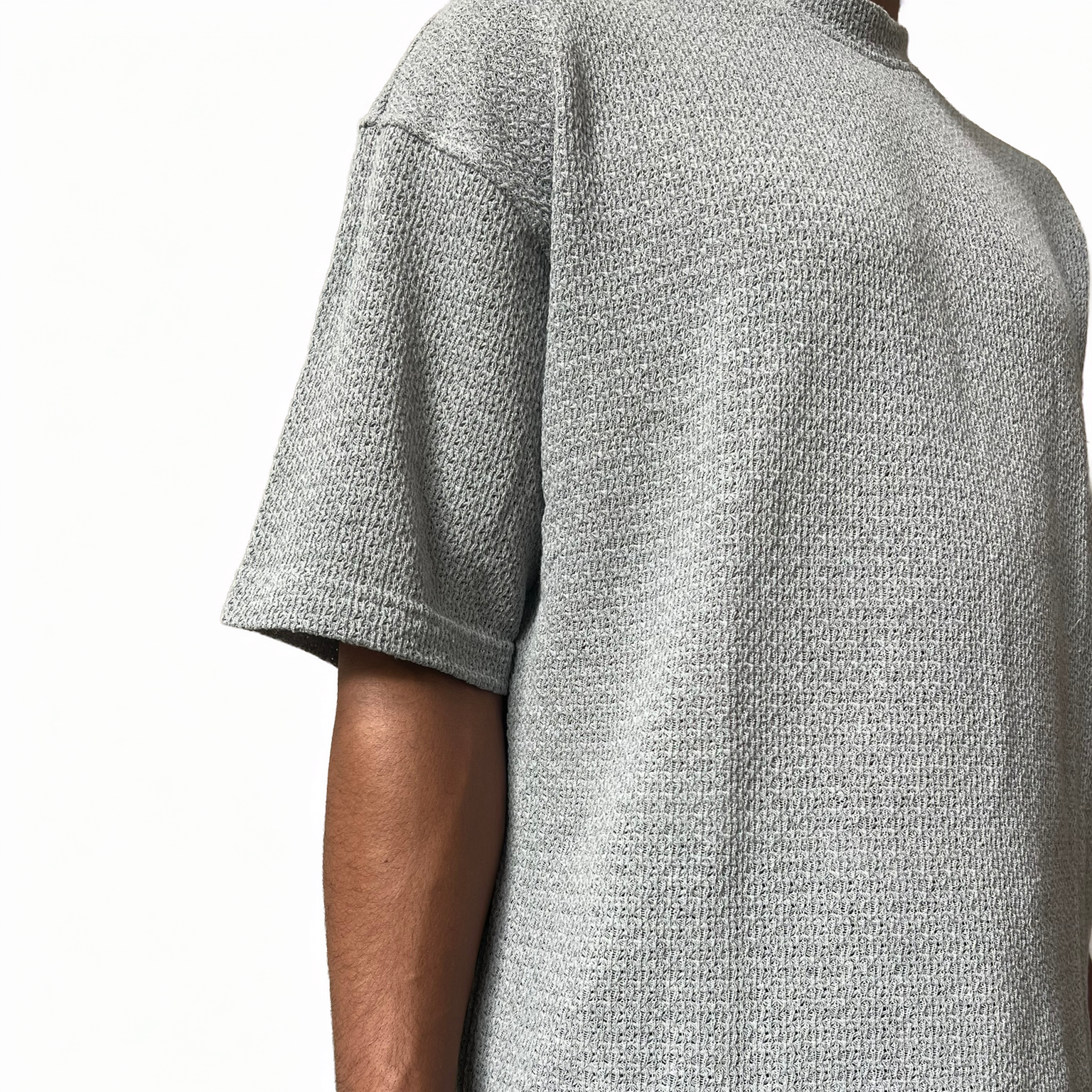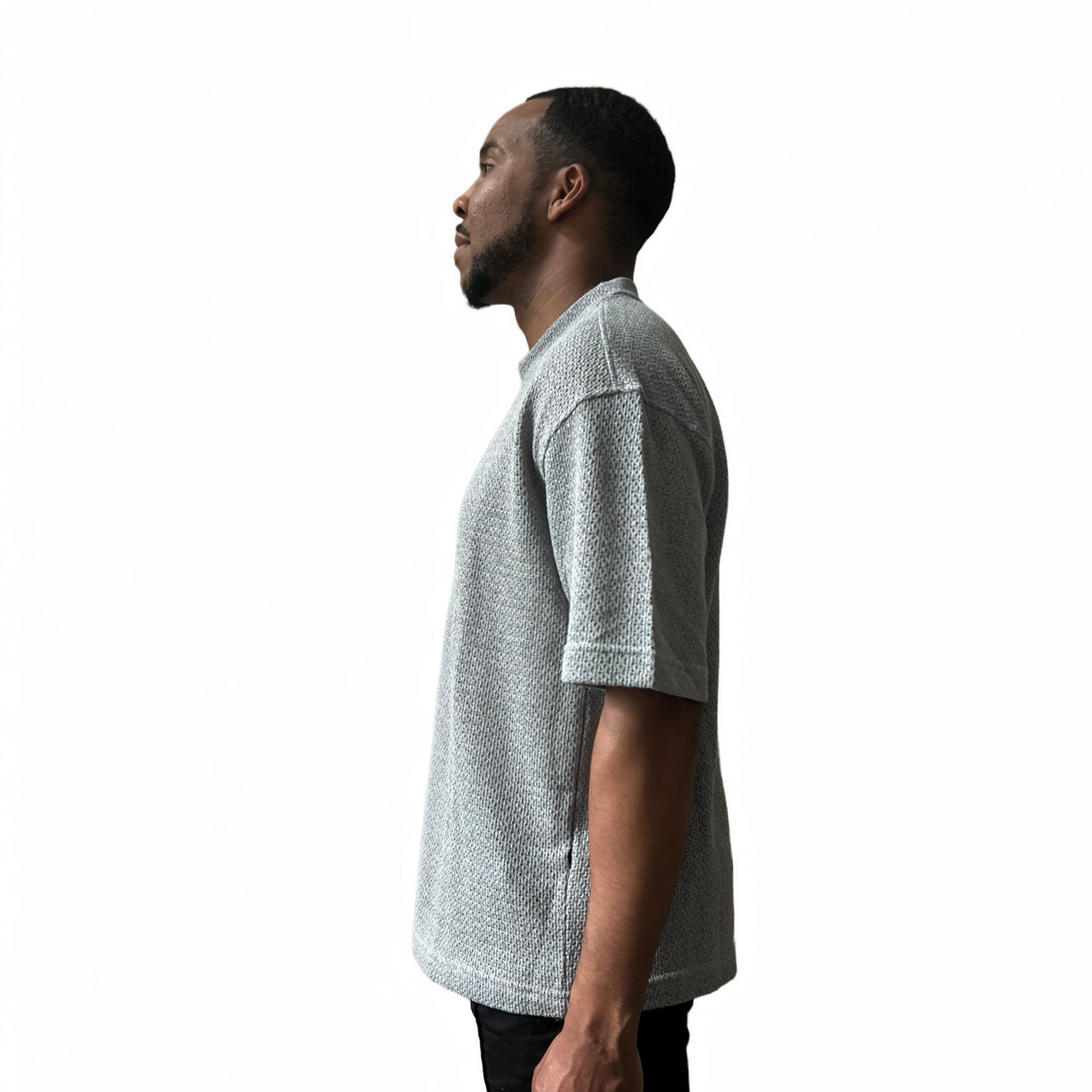 Crafted from breathable mid-weight knit, the drifter tee features a subtle yet refined texture. The mock neckline offers a modern silhouette, while the relaxed drop shoulder fit ensures ease of movement.